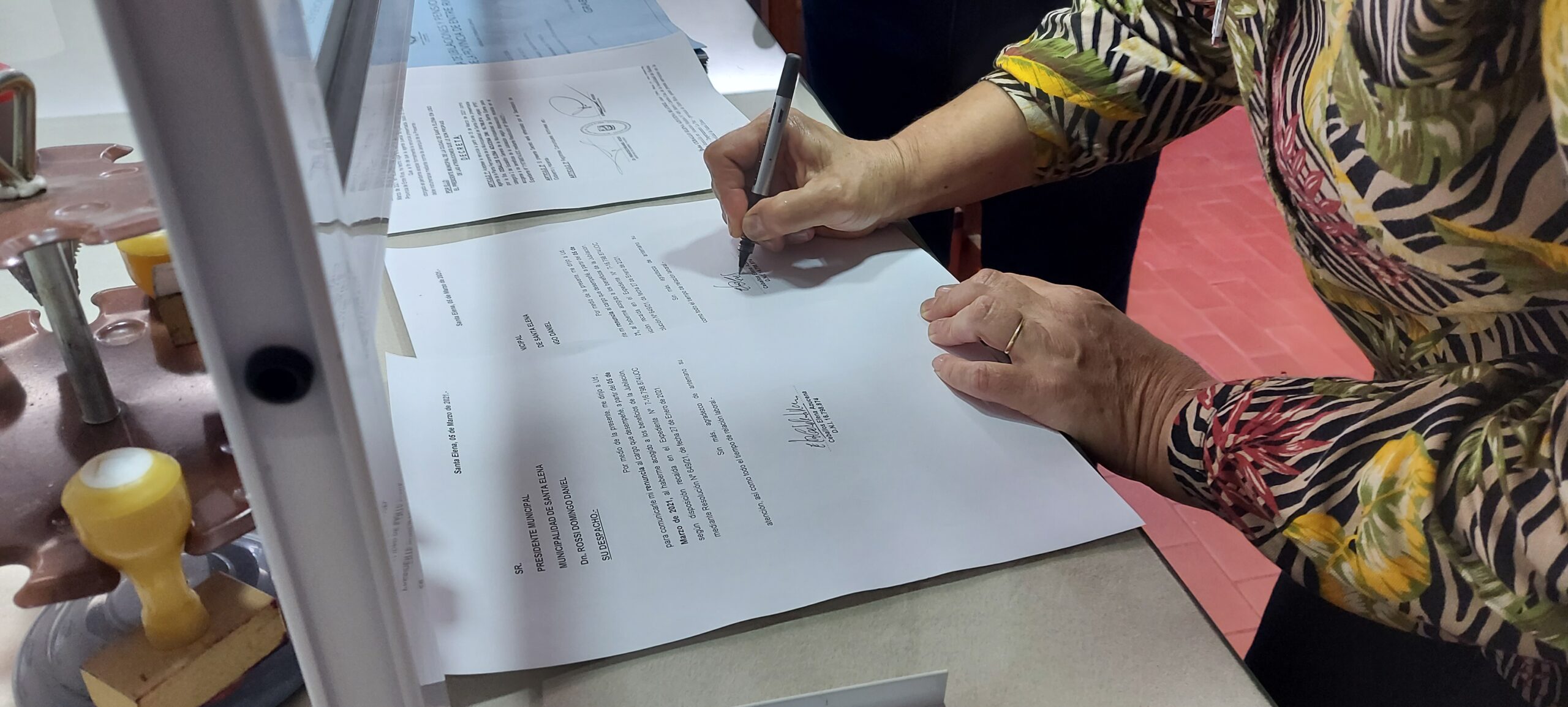 Durante la jornada de hoy, el Presidente Municipal, Daniel Rossi junto a la responsable del Área de Personal, Mariela Britos, formalizaron la jubilación de dos empleados municipales: Elena Azucena Ceballos y Juan José Valle.
